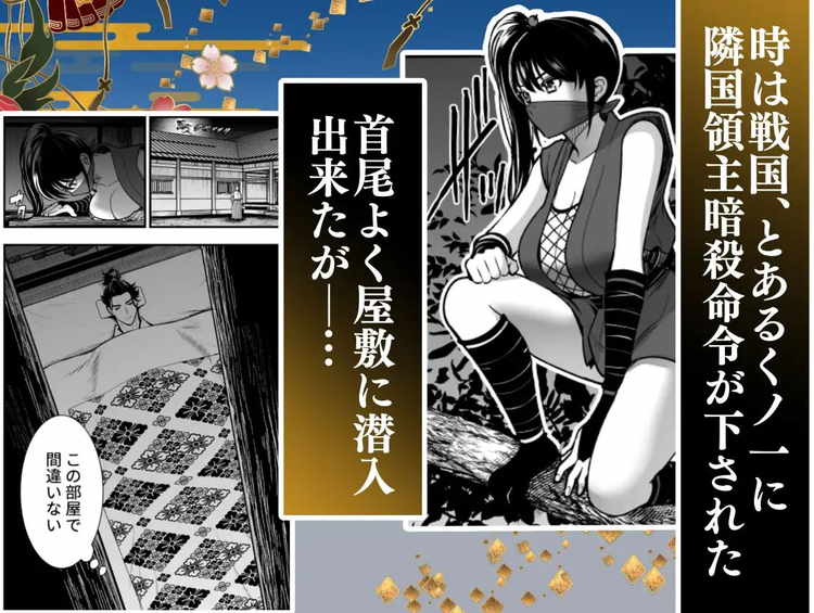 戦国時代が舞台の歴史ティーンズラブ。戦国武将・東禅寺義政は武功を上げ続けている才能がある若き領主。そんな彼の命を奪うべく隣国からくの一が差し向けられた。殿様である義政が眠る寝室の天井裏に忍び込み、いざ攻撃を仕掛けようとしたが、気づかれてしまい捕らわれてしまうくノ一。しかし、彼女を押さえつけたその時、義政に衝撃が走る。肉感たっぷりの乳と尻を持つ可愛い顔立ちのくノ一に一目惚れしてしまった。そこから始まる、躾という名の溺愛調教。逞しい巨根と筋骨隆々の肉体の義政が力強いセックスでくノ一の肉体に快楽を叩き込む。スパンキングによる痛みとセックスによる快楽をとめどなく与えられ、最終的にはプロポーズにまで発展。敵同士だった殿様とくノ一の出会いと性生活を描いた歴史ティーンズラブ。