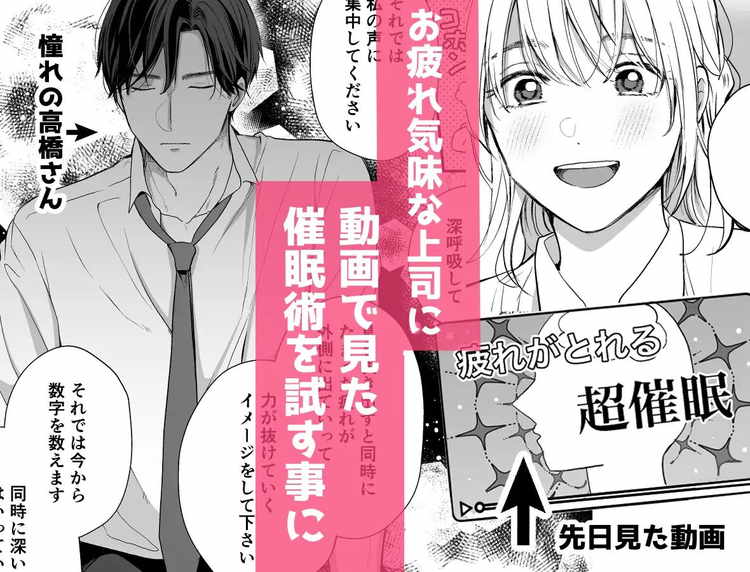 主人公・菫の憧れの上司は頼もしくて優しい高橋さん。今日も菫が遅くまで残業していたら、優しく声をかけてくれたけどかなりお疲れの模様。そこで菫は、高橋さんに疲れが取れる催眠術をかけてみる事に。しかし、術をかけ終えたあとに、ゆっくりと目を開いた高橋さんは、今までとどこか雰囲気が変わっていました。いきなり菫の身体を求め始め、ドS丸出しの口調でその場の空気を掌握。拒めないまま服を脱ぎ、クンニでたっぷりとクリトリスを舐められる菫。いつもと違う高橋さんのドSな言葉責めと、強引な電マクリ責めセックスでハメ潮を吹かされるほどの絶頂を体験。憧れの上司が催眠術で豹変し大暴走してしまうドS攻めTL漫画です。良かれと思ってやったことがこんな事になってしまったけど、淫らな欲望に満ちた憧れの上司を見れたことで大満足。