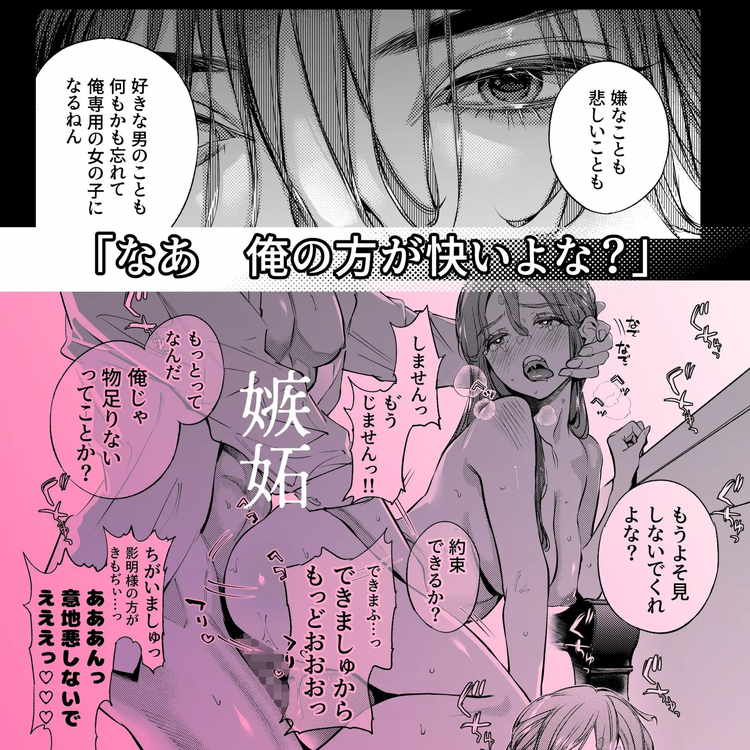 超人気TLシリーズ「片端の桜」の第四章が発売。天女・珠々と人間男・伊谷影明の異種カップルティーンズラブ。いろいろありましたが、永遠の愛を誓い婚約までたどり着いた二人。そして今回、珠々が過去に暮らしていた玄界の住人・巣枯繭結が登場。見るからにヤバくて怪しい男子は、やはりその見た目どおりの執着系男子でした。触手を使い珠々を捕らえ、快楽責めで自分のものにしようとたくらむ繭結。そして、最後に待ち受けているのは影明による嫉妬攻めとお仕置きセックス。乳首・クリトリス・子宮・アナル、全ての性感帯を容赦なく攻める愛のあるラブエッチをお楽しみください。こんなにエロい産卵シーンを読めるのは「片端の桜」だけ。蓉霞・芙蓉という珠々の侍女も大活躍。今回も珠々ちゃんが色々大変ですね。