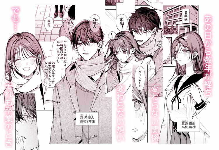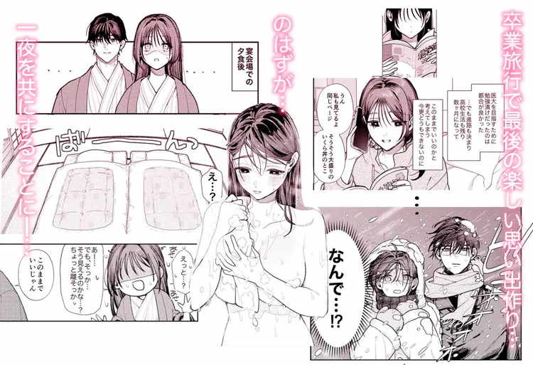 両想いなのに気持ちを伝える事ができなかった同級生の來由ちゃんと乃理人くんが、卒業旅行で初エッチに至る純愛ティーンズラブ。とにかくこの二人がお似合いのナイスカップル。三年間も両片思い状態だったのが信じられないくらいです。そんな二人が、卒業旅行でのトラブルがきっかけで一晩を一緒に過ごすことに。この状況で気持ちを抑えきれなかったのは乃理人くんでした。同じ部屋で布団が並べて敷かれていたら、好きな女子と一緒に寝たくなるのは当然のこと。男として迫ってくる友達に流されるがまま身を任せてしまう來由ちゃん。ギンギンになった巨根に少し驚きながらも初めてだらけの初エッチを体験。今まで溜めこんでいた気持ちをぶつけるような乃理人くんの激しいセックスが見どころです。