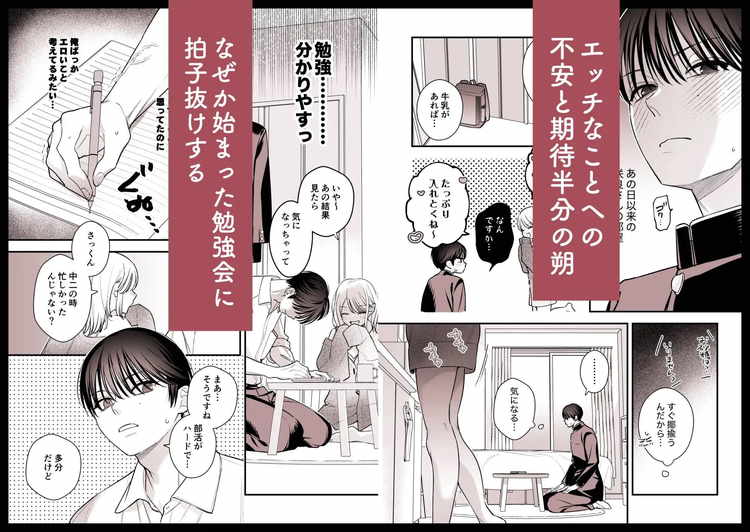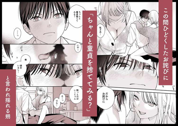 「元カレの弟に手を出してみた」の筆おろし話をメインに描いた作品。元カレの弟・朔くんの初キス、ベロチュー、手マン、そして初セックス。真面目だけれど、やっぱり年頃の男子学生。年上のお姉さん・咲良からエッチな誘惑をされて拒めるほど精神的に強くはありませんでした。兄の元カノに童貞を奪われる男子学生という構図がめちゃエロい。挿入前に暴発射精してしまう朔くんの可愛さ、エッチをするほど激しくなる腰の動き、シックスナインや騎乗位、対面座位で容赦なく攻める咲良のテクニックなど見どころたっぷりの人気作品です。セックスにどんどん慣れてきた朔くんの言葉責めや乳首責め、若さ溢れる男子学生の情熱的なセックスをお楽しみください。