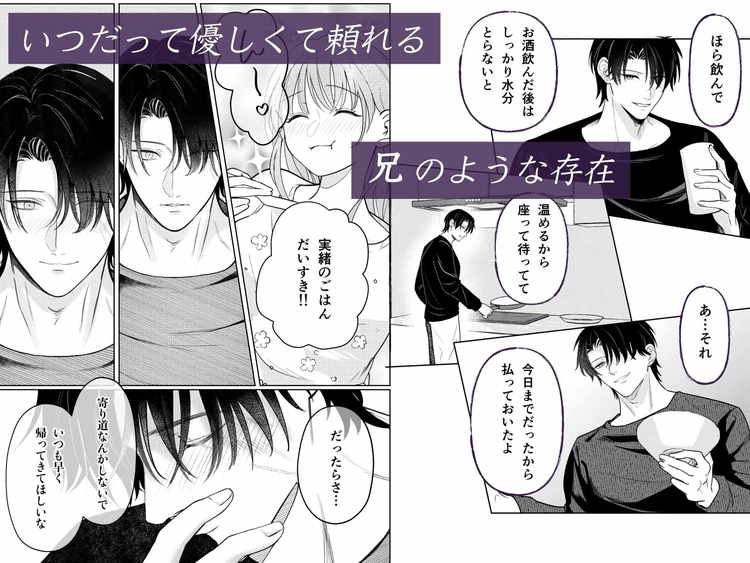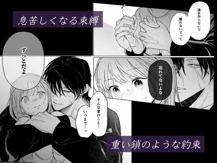 ヤンデレ責めと体格差セックスが楽しめるTL漫画です。幼いころからそばにいてくれる年上幼馴染の実緒。今でも一緒に暮らすほど仲良しで、料理もできるし経済力もあるお兄ちゃん。でも少々束縛がきつめ。そんな彼が夏芽の「自由になりたい」という一言によって独占欲とヤンデレを暴走させる。普段見せない怖い顔と低い声で夏芽に迫ってきて、その身体を自分だけのものにしようと暴き始める。強引なキス、強引なクンニ、今まで積み上げてきたもの全てをぶち壊すほどのセックス。兄のように慕ってきた年上幼馴染が嫉妬によって雄へと豹変するヤンデレTL漫画。