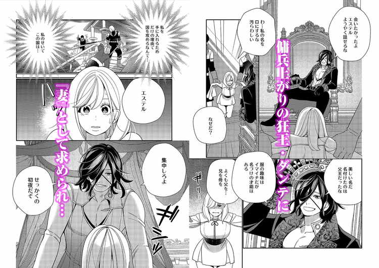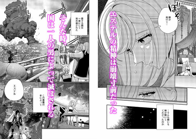 清廉で可憐、民のために生きる心優しき王女・エステル。聖女として輝かしく生きているのかと思いきや、周りの環境のせいで精神が限界寸前。そんな日々の中、王国を滅ぼしエステルを妻として迎えに来たのは敵国の王・ダンテだった。抵抗するエステルに重すぎる執着心をぶつけるダンテ。媚薬を与え、城内の至る所で肉体を貪るセックスシーンはエロさ抜群。エステルの若く美しい身体が素晴らしい。媚薬の力によって身体は快楽を受け入れるが、強い精神力で心までは奪われない聖女。しかし、従順だったエステルを傷つけ続けてきた王族の身内と今までの環境、過去の記憶がダンテの方へと背中を押す。これはメリバかハッピーエンドか。実は、過去に出会っていたダンテの一途な執着愛がエステルを幸せにしてくれることを願っています。エロさとストーリーが高評価の人気ファンタジーTL漫画。