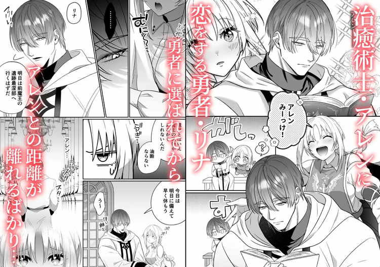 どう見ても前衛向きの体格をしているゴリマッチョ治癒士アレンと天真爛漫な女勇者リナのファンタジーTL漫画。献身的にサポートしてくれる優しくて頼りになるアレンに恋心を寄せるリナ。距離感を埋めようと積極的に絡むものの、真面目な彼が作る心の壁を乗り越えることはなさそう。そんなある日、リナは魔王の遺跡で邪悪な呪いを受けてしまう。そこで、他人が受けた傷や呪いを自分に移す能力を持つアレンがリナの呪いをその身で受け止める。目を覚ましたリナはアレンの身を案じて部屋に飛び込むとそこで待っていなのはいつもの優しいアレンではなく、欲望を暴走させたオスだった。アレンの秘めた想いがリナに激しくぶつけられるファンタジーティーンズラブ。大きな体と鍛え上げられた筋肉、悪い雄になったアレンの豪快な攻めが見どころです。