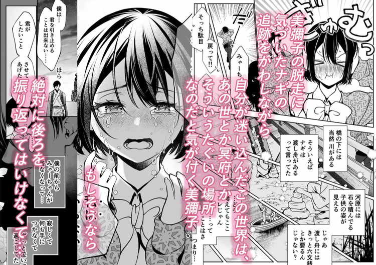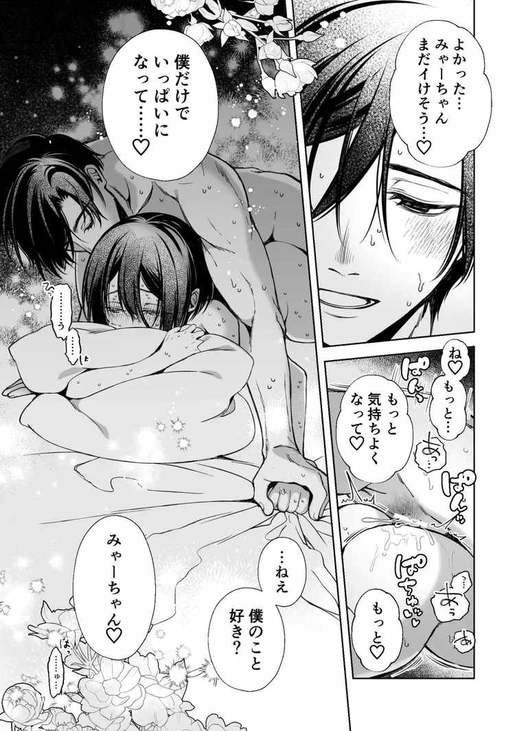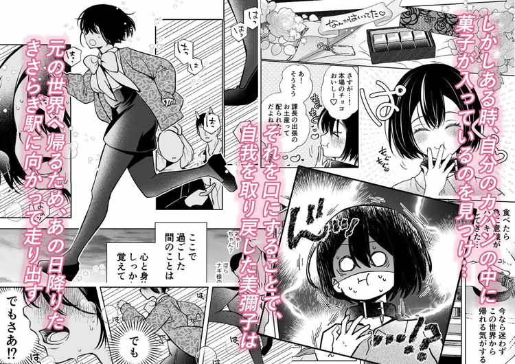 「壊れた世界で迷子のみゃーちゃん」の続編。異世界の料理を食べた事とナギに「みゃーちゃん」と呼ばれた事がきっかけで、現世での記憶を失い強制支配と絶対服従の壊れた世界から抜け出せなくなった美彌子。しかし今回、現世の食べ物を口にした事で記憶が蘇る。現世に戻るために「きさらぎ駅」へと向かう美彌子と、必死で追いかけるナギ。二人の本心がぶつかり合った結果、みゃーちゃんが選んだ答えはこの世界に残りナギと暮らす事だった。自分の事を心から大切にしてくれる男性と何不自由のない暮らし、気持ちいいの向こう側に到達するほどの蕩けるようなセックス。みゃーちゃんとナギのラブラブエッチが今回もしっかりエロい人気TL漫画。