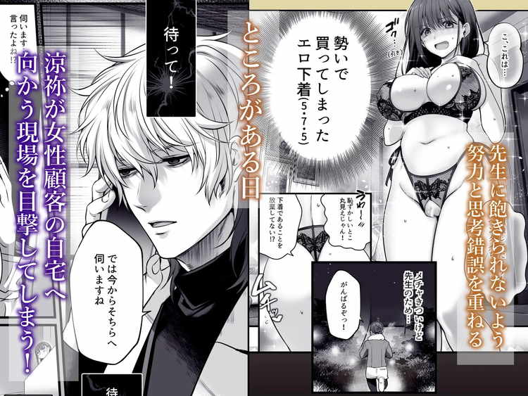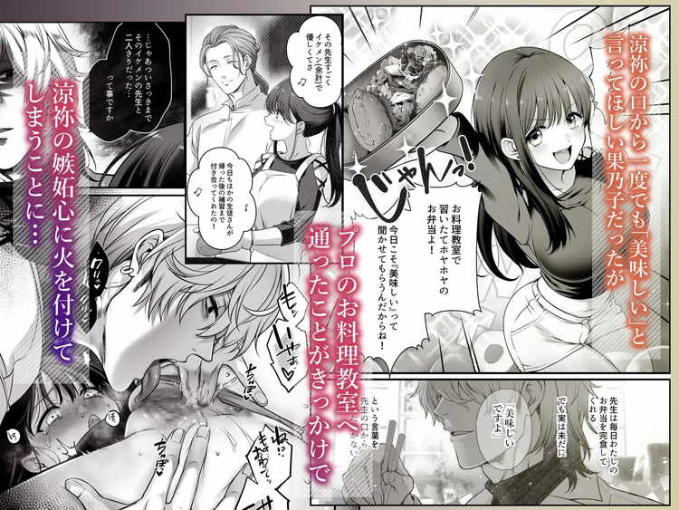「専属栄養士の男」にて恋人同士になった右京果乃子と管理栄養士の左久真涼祢。涼祢が専属栄養士になり、ラブラブカップルとして愛を育んでいるのかと思いきやそういうわけでもなかった。しかし、涼祢の嫉妬深さと独占欲の強さはなかなかのもの。お料理教室に通っている果乃子が、イケメンの先生に付きっきりで教わっているのを知るなり顔色が変わって執着攻め開始。この時の壮絶なクンニがめちゃくちゃエロい。大股を開き鼻の下で固定されて身動きできないまま割れ目をガンガン攻められる果乃子。クールだけど異常な愛と執着心を持つ専属栄養士とのエロさ満点のティーンズラブ。今回もかっこいい涼祢さんが高評価。