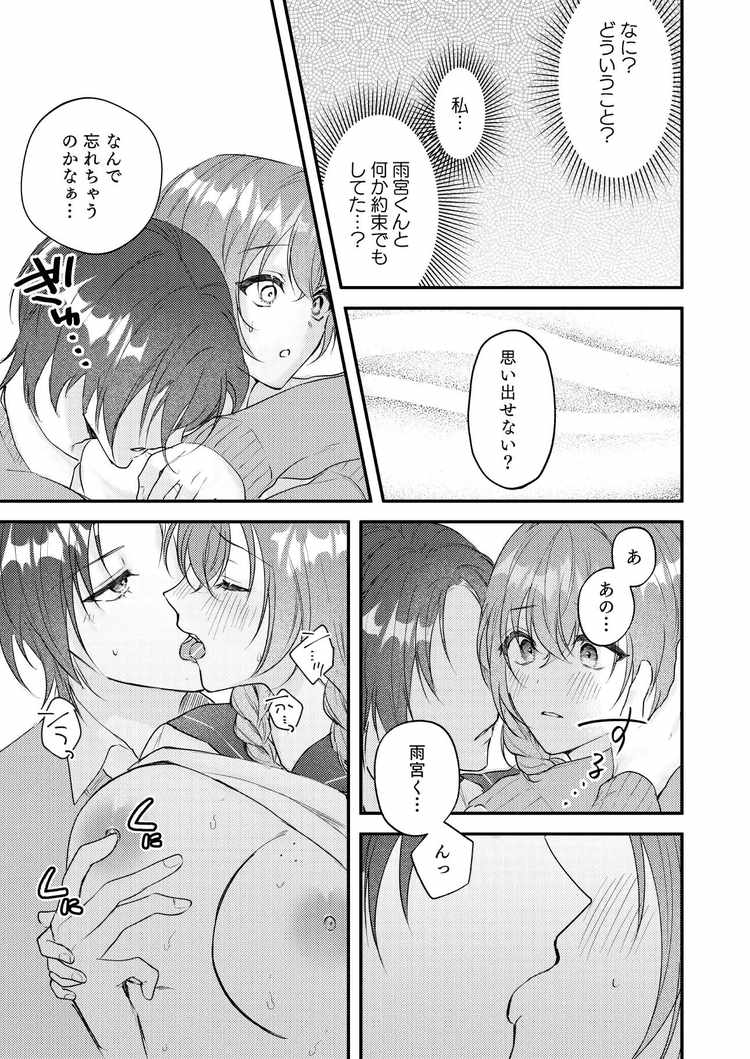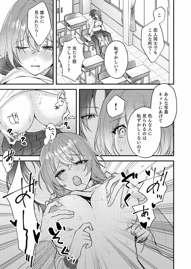 真面目な自分を変えるためにネットにエッチな自撮りをあげてしまった主人公の結。みるみる増えるフォロワーやファンに喜びを感じて今や立派なルーティンになってしまった女子は結構いるでしょう。そんな結の前に現れたのは転校生で問題児の雨宮春巳。どういうわけか、エッチな自撮り女子の正体を結と見抜いていて彼に脅迫されてしまう。その内容は「俺の彼女になってくれる?」というものだった。恋人になったら秘密は守る。何を考えているのかわからない雨宮に従う道しかない結だった。教室で恋人のようにキスをするだけでなくおっぱいに触れ、耳を舐めながら手マンで潮を吹かせるほどに攻めまくる雨宮。身体を見ただけで結と見抜いた雨宮の正体とは。ドキドキハッピーエンドの同級生ティーンズラブ。