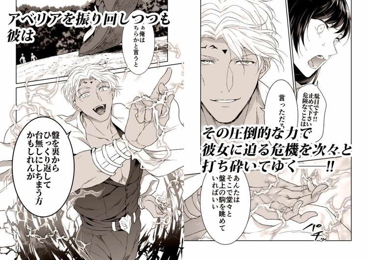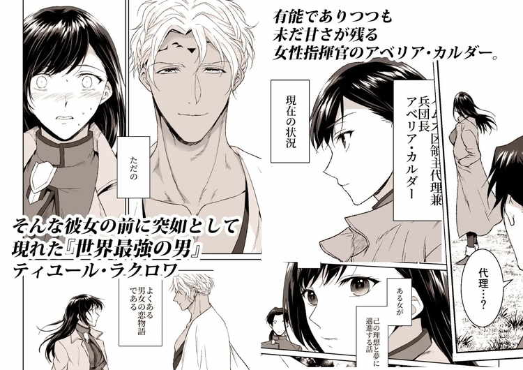真面目で努力家なアベリア・カルダーは若き女司令官。そんな彼女の前に突然現れ「あんたに心底惚れている。俺と契約してほしい。」と言ってきたのは最強の魔術師と名高いティユール・ラクロワ。何かの思惑があっての事なのか、それとも真実なのか。飄々とした態度のティユールにわけのわからぬまま翻弄され、心の中をかき乱される堅物女司令官。実はこの二人、過去に出会った事があり、アベリアにとってティユールも特別な存在だった。魔術師の押しの強さに普段はクールな女司令官も戸惑いを隠せない。一国の兵力に匹敵する最強の魔術師に告白されたら誰もが恐れおののくに違いありません。ティユールの本心、アベリアの乱れっぷり、二人の濃厚な中出しセックスなど見どころ満載のファンタジーTL漫画です。魔法を使えるのにしっかりと身体も鍛えている褐色マッチョなボディも見どころ。