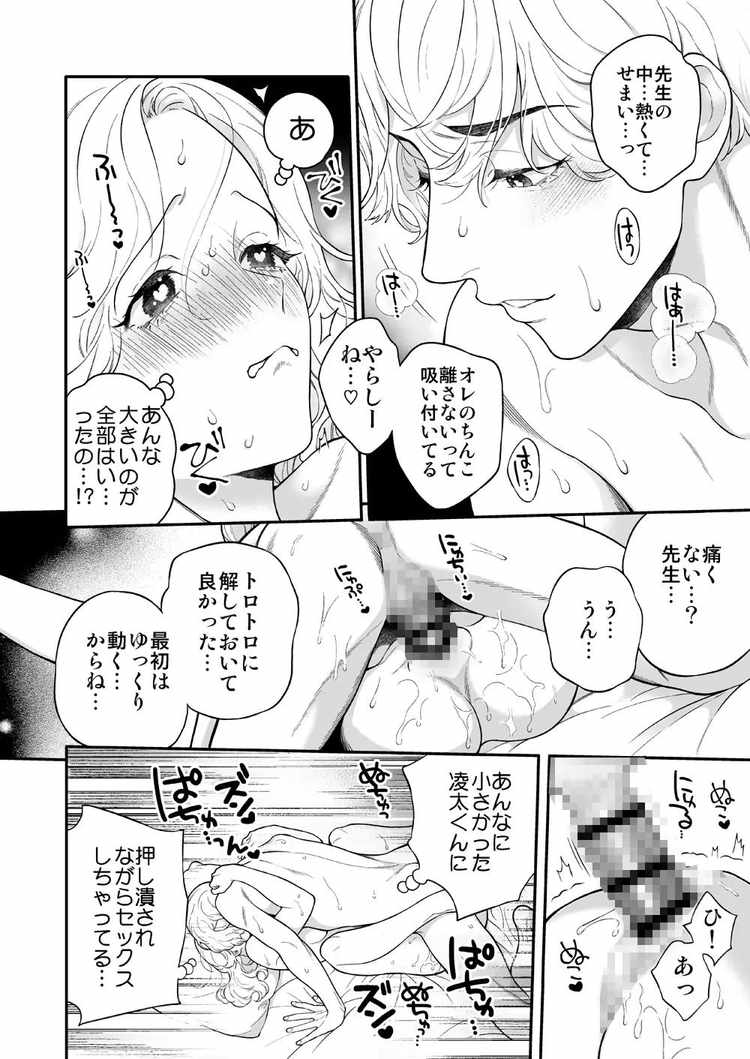 過去に家庭教師のアルバイトをしていた沙奈は30歳を目前に控えた婚活中のOL。そして、彼女の元教え子である凌太は現在大学四年生へと成長。そんな歳の差のある二人が熱烈な中出しセックスを繰り広げるティーンズラブ。就職が決まった凌太をお酒で祝う沙奈ですが、酔った勢いで「30歳までに処女を捨てたい」と本音を語ってしまう。それを聞いた凌太の男気が暴走。一途な想いを秘めていた元教え子の年下男子に処女を奪われ、最高に気持ちいいセックスで中出しされる元家庭教師のお姉さん。「先生」と呼ばれながら濃厚な愛撫やクンニで攻められるのはかなり興奮しますね。大学卒業間近の歳の離れた若い男の子に処女を捧げて、本気の中出しで溺愛される人気TL漫画です。