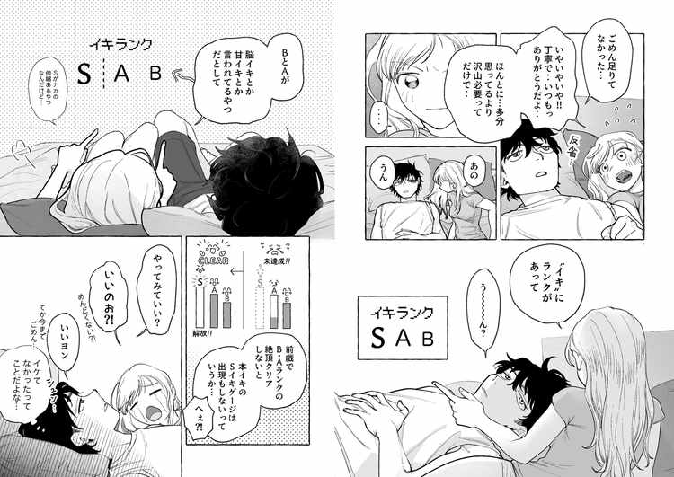 彼氏のなおとさん(26歳)と付き合って一年半のひなちゃん(24歳)。互いを思い合える素敵なまったりカップルです。ある日「セックスの精度を上げたい」と提案してきたなおとさん。セックスについて真剣に話し合うなかで、絶頂にはランクがあり、Sランクのイキを体験したいと申し訳なさそうに伝えるひなちゃん。要望としては、長い前戯でA・Bのイキを味わい、セックスでSに達するとのこと。「いいとかヤダとか全部言ってね。」と本気を見せるなおとさんが優しい。そして付き合って一年半の彼氏が、彼女にSランクの絶頂を体験してもらうべく濃厚前戯と本気セックスで攻める。穏やかな時間の中で繰り広げられるリアルな空気感とイチャラブエッチが高評価。素敵なカップルTL漫画です。
