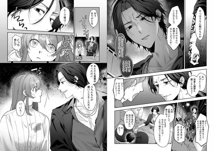 博多の屋台で人気グルメを満喫していた女性(主人公)が地元のヤクザに完堕ちさせられるTL漫画。見るからに危険な男・糟屋狂也は組長補佐の肩書を持つ博多のヤクザ。部下のせいで服を汚してしまったお詫びとして強引にラブホテルに連れていかれる羽目に。怖くて逆らえずに不安な気持ちいっぱいで付いてきてしまった女性。リアルなら怖すぎる展開ですが、狂也の爽やかスマイルや、さっきと打って変わって話しやすくなった彼の人柄に少しずつ心を開いてしまう。しかし、それは狂也の巧みな罠だった。キスを許した途端、流れるように性行為のパターンに移り変わる空気。まるで小さい子をあやすように優しく褒めながら、耳舐めや乳首舐めで女性をその気にさせてゆくテクニックが素晴らしい。感じにくい体質を気にしていた女性でしたが、今まで味わったことのない感覚(絶頂)を巧みなクリ責め手マンで知ることに。そして、クンニでさらにほぐれた膣にギンギンに勃起した巨根が挿入される。激しいピストン、密着寝バック、膣内射精でシンクロ絶頂。博多弁ヤクザの褒めて褒めて褒めまくる自己肯定感爆上げセックスが見どころ。強面男の優しい言葉責めを味わいたい方におすすめ。