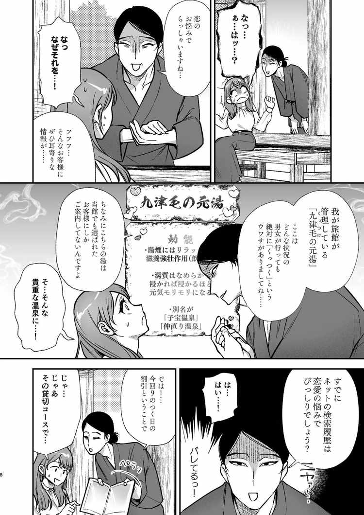 から少し後のお話。セックスしないと出られない部屋から脱出することに成功したクールな無表情男・杜沢先輩と、頑張り屋さんの後輩・牧野。先輩のことを怖くて変な人と思っていた後輩は、前回の件がきっかけで恋愛感情が爆上がり。社員旅行をきっかけに仲を深めたいと思っていたところ、旅館の主人に「九津毛の湯」なるものをゴリ押しされる。それは、男女が一緒に入浴すれば絶対に「くっつく」と噂の秘湯だった。提案を受け入れた牧野はさっそく先輩を誘って入浴。しかし、そこはまたしても出られない部屋で、やる気満々の先輩が待ち構えていた。前回よりも深く激しいセックスで愛を確かめ合うことになった先輩・後輩のオフィスラブTL漫画。力強く子宮に突き刺さる亀頭、子宮で放出される先輩の熱い精液など、前回よりもエロ重視。人気シリーズです。