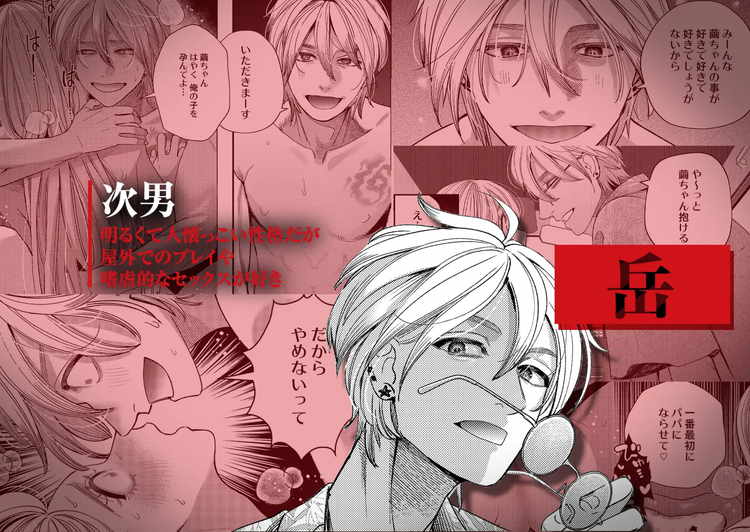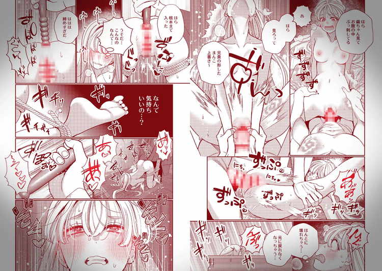 小此木葉っぱ作品。本作も、かなり濃厚で個性的な性行為を強いられています。生まれた時から特別な花嫁として育てられてきたヒロイン・繭の嫁ぎ先は、代々村を支配してきた御影家。妻となって子を孕み、一族の一人として生きてゆく。そんな単純な話ではありませんでした。繭を妻として待ち構えていたのは長男・真澄、次男・岳、そして父親であり当主の秋臣の親子だった。三人の夫と肉体関係を持ち、競争するかのように子作りに励む毎日。執着心が強い巨根の長男、嗜虐的な性行為を強いる次男、アナル開発などの調教を好む父。三人に代わる代わる抱かれながら壊れるほどの快楽を知り、御影家の闇に堕ちてゆく。兄弟との二穴3P、父の支配的なセックスなど、さまざまなプレイでイカされるTL漫画です。重厚なストーリーと壮絶なエロシーンが楽しめます。