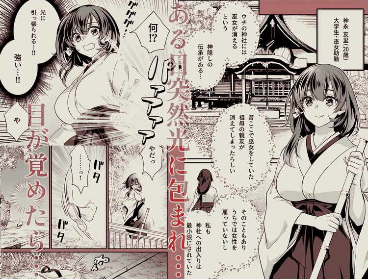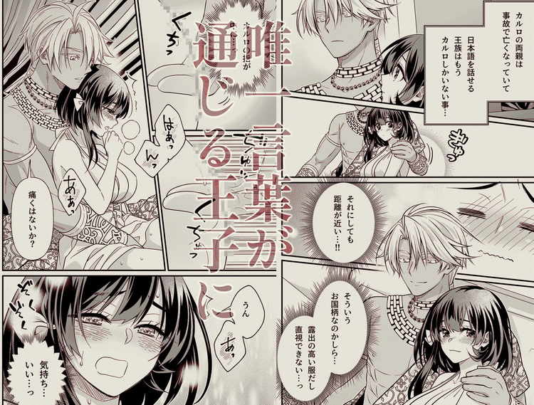異世界の雨乞いはめっちゃエロかった。実家の神社で巫女をしている女子大生・友里が突然異世界へ転移させられてしまう。気づいたときにはすでに裸で拘束されていた。そして、たくさんの人たちが見守る中で乳首とクリトリスを弄られて絶頂を強いられる。快感がMAXに達したときに潮を吹いてイッてしまった友里。それと同時に沸き上がる人々の歓声。「これは雨乞いの儀式?」と気づく友里に再び潮吹きさせようと性感帯を刺激し始める異世界人。そこに助けに現れたのは褐色肌で金髪の王子・カルロ。彼の祖母が日本人の異世界転移者ということで唯一言葉が通じる相手に。意味不明な異世界でようやく一安心できるかと思いきや、やたらと距離感が近いカルロに熱烈なアプローチを受け肉体関係へと突入。二人の燃え上がるような恋と、愛の洪水がいっぱいのイチャラブセックスを描いた異世界転移ものTL漫画です。